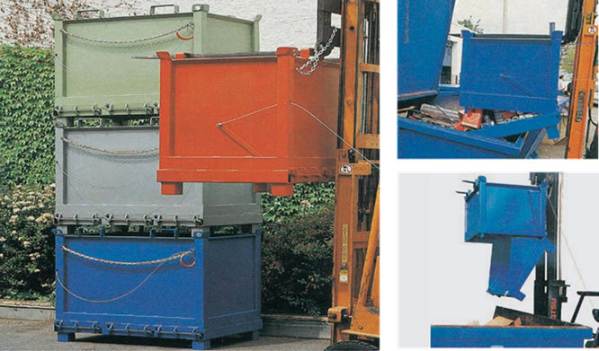 鐵卸箱為自卸式,標(biāo)準(zhǔn)為叉車型,亦可選配腳輪,使其為叉車移動(dòng)兩用型 |