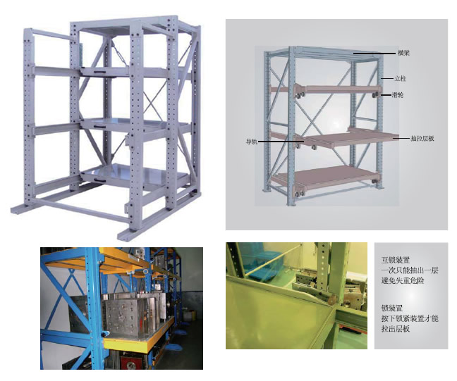 是適合于存放模具等機械加工塊的存放。占地少、承重大、分類詳細、存取方便。抽屜式滑道,承重性好,可以60%抽出,操作簡易,安全,是現代化工廠維修及加工車間的常用設施之一。