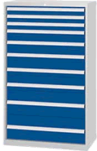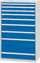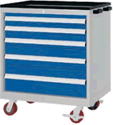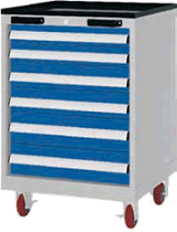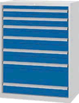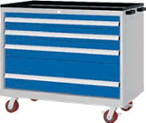 工具柜: • 冷軋板材,堅固耐用的柜體。 • 中置鎖機構,保證抽屜的開啟和管理。 • 全寬內嵌式把手,配臺標簽,一目了然。 • 可選擇配置不同高度的抽屜,滿足你的需求。 • 抽屜內部可隨意分割空間。 • 加裝腳輪,可任意移動。 • 加裝頂框,防止物品滑落,增加使用空間。 工具車: 是可以移動的工具柜,適合在生產現場合理地運送工具和配件。