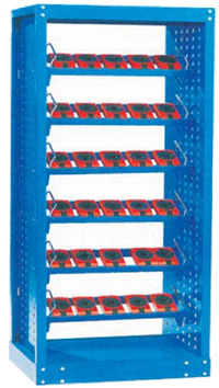 刀具架 刀具架是本公司刀具系列產品之一:<br> 1、采用掛片結構,可配合IS0系列、HSK系列標準刀座使用<br> 2、人字孔結構,可通過掛片調整刀座為0、15、30度;<br> 3、全螺紋結構,安裝方便;<br> 4、配有兩定兩活剎聚氨脂腳輪,推動輕盈;