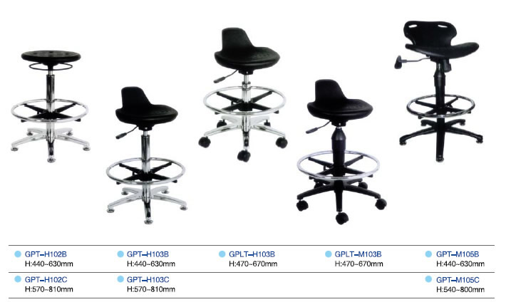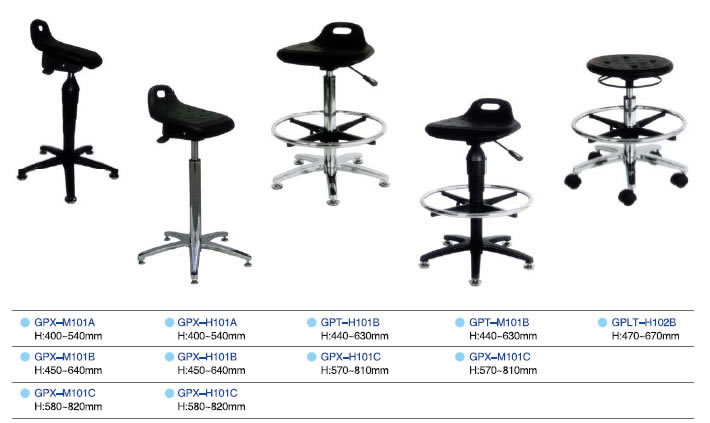 凳面采用PV自結皮發泡制作(黑色皮紋),型號中M:表示腳架采用黑色噴塑,H:表示腳架電鍍處理