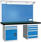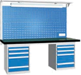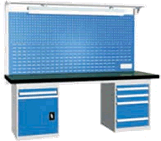 工位桌+100×1,1000高立柱、450高方孔掛板、450高百葉掛板、燈架 |