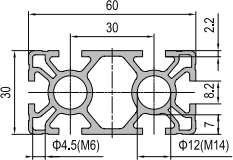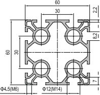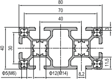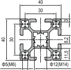標準鋁型材有很多平面規格,但長度規格為6米,F有鋁型材平面規格型號為4040,其平面規格為:40×40(mm),重量為2.02kg/m