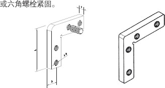 L型連接板:用于型材高強度L形連接。采用T形螺栓或六角頭螺栓、內六角圓柱頭螺釘連接