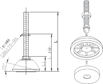 MC尼龍底腳組件:用于框架底部的支撐,減振性能好,具有自動調位作用,允許最大傾角15度,保證支撐桿垂直,消除支撐桿的彎曲力。