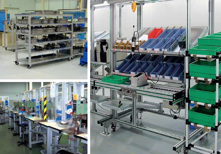 鋁型材系統與線棒系統類同,以其柔性化、靈活多變、擴展性強等特點,幫助現代企業降低物流成本、持續改善物流管理,使企業逐步走向精益生產;由鋁型材與種類豐富的聯接夾頭組合而成.可由現場工人根據自身條件和操作習慣,利用鋁型材系統自行設計工位器具,從而不斷提高工作效率,使物流的持續改進成為可能。