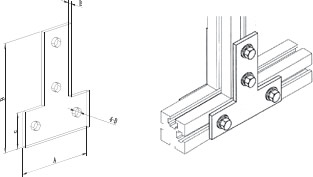 T型連接板:用于型材高強度T形連接。采用T形螺栓或六角頭螺栓、內六角圓柱頭螺釘連接