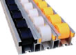 2、標準的滾輪規格為Φ34×24.5mm,滾輪中心距為41.5mm,每米滾道有22個ABS滾輪。